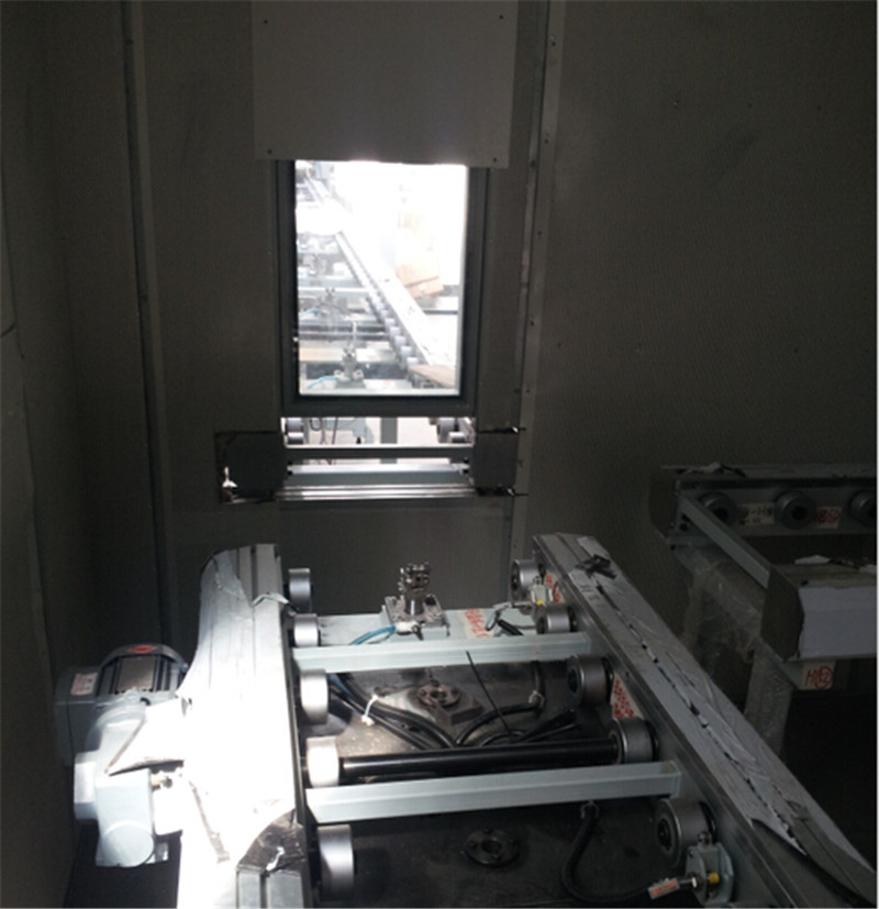 工程難點:本項目中隔音房要有線體穿過,并且保證線體上工件自動進入隔音房。我公司根據甲方的要求在隔音房的合適位置設置自動升降隔音門,實現與甲方線體的統一工作。